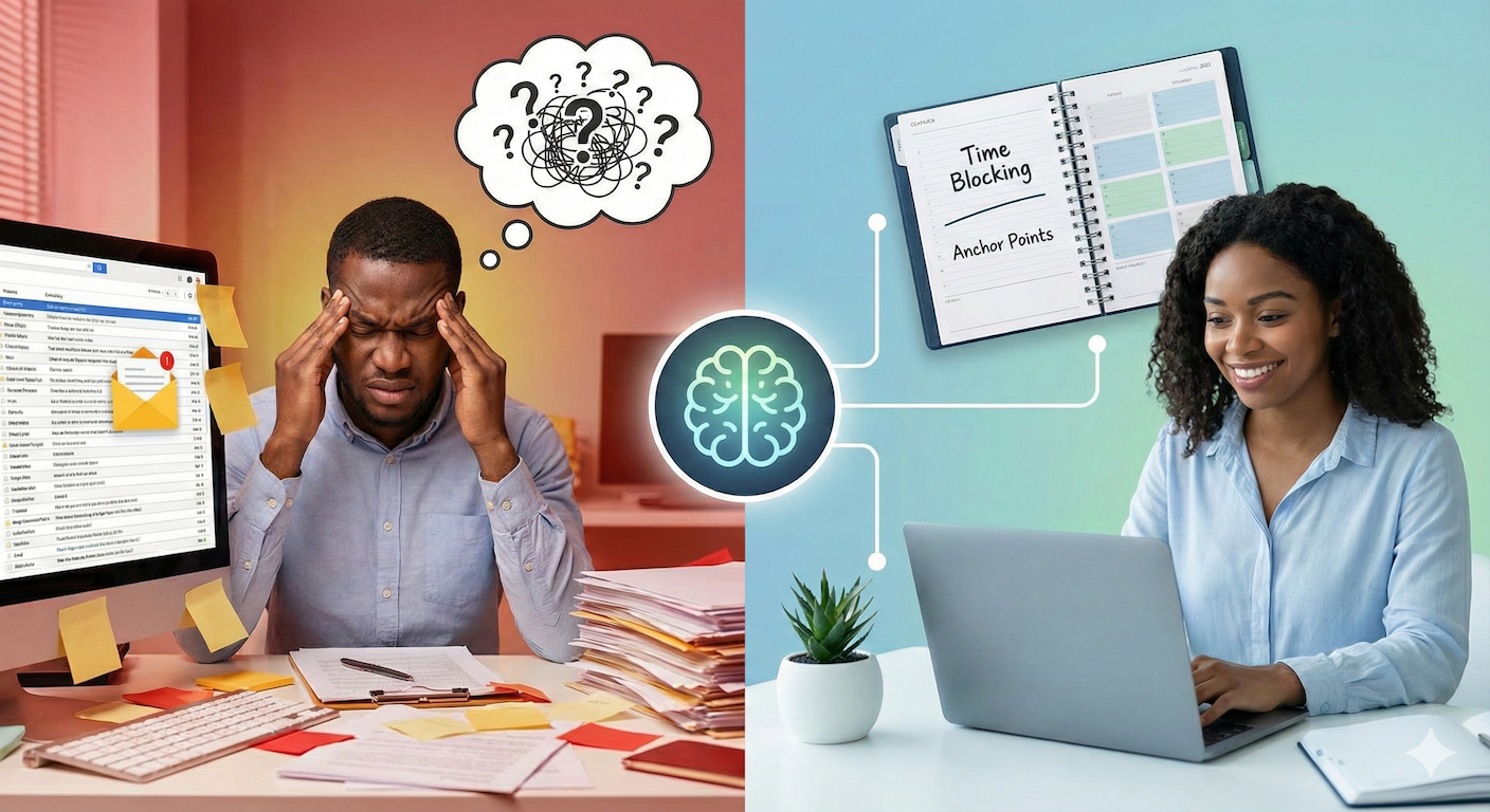 Life is unpredictable. "If-then" planning helps you respond to disruptions without feeling derailed. For example: "If my morning meeting runs late, then I'll use my scheduled lunch break for that focused work." This gives you a pre-made decision, short-circuiting anxiety.